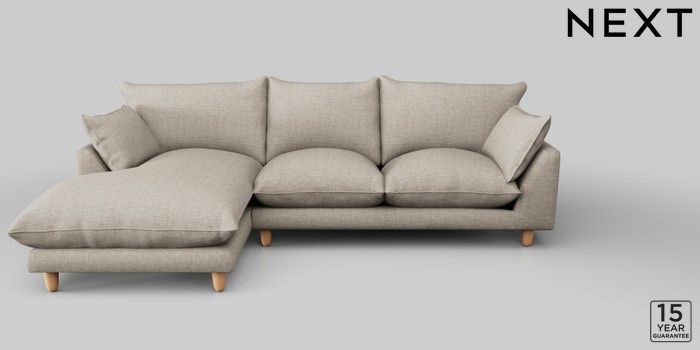 7.2.10 Noa Deep Relaxed Sit Medium Sofa Chaise - Left Hand Chunky Weave Mid Natural High Leg - Light | Made Click here to use our website with more accessibility support, for example screen readers