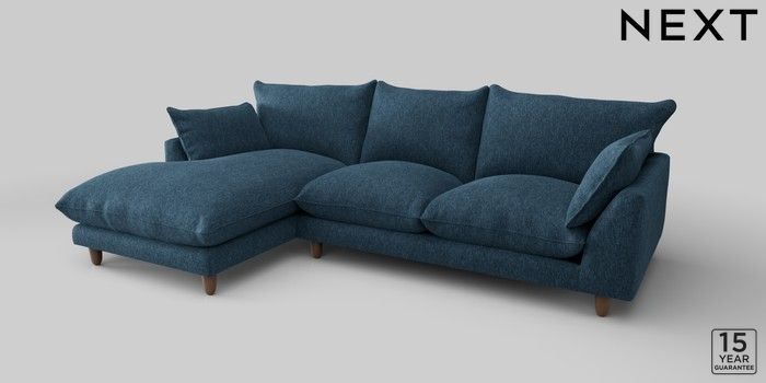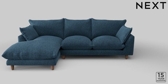 7.2.10 Noa Deep Relaxed Sit Medium Sofa Chaise - Left Hand Cotswold Chenille Dark Blue High Leg - Mid | Made Click here to use our website with more accessibility support, for example screen readers