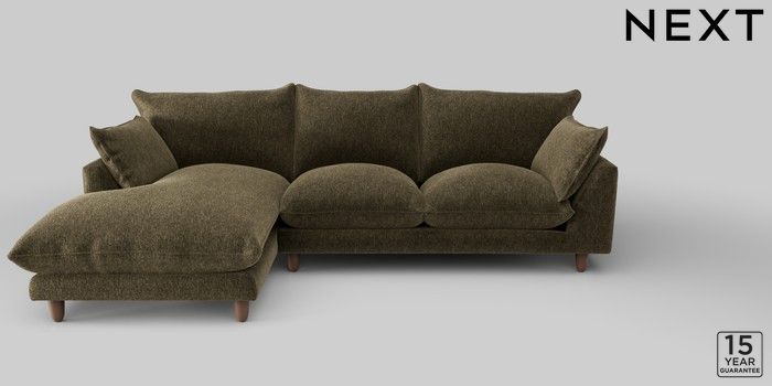 7.2.10 Noa Deep Relaxed Sit Medium Sofa Chaise - Left Hand Cotswold Chenille Dark Green High Leg - Mid | Made Click here to use our website with more accessibility support, for example screen readers