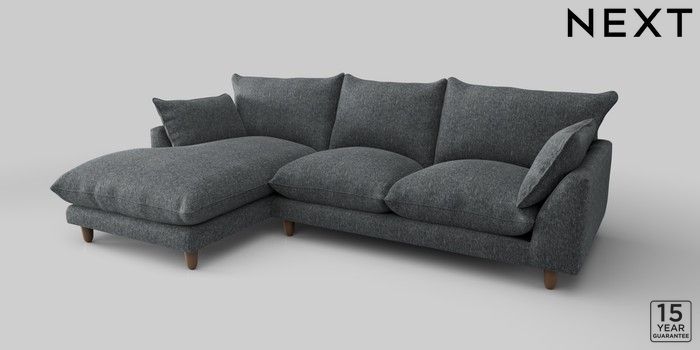 7.2.10 Noa Deep Relaxed Sit Medium Sofa Chaise - Left Hand Cotswold Chenille Dark Grey High Leg - Mid | Made Click here to use our website with more accessibility support, for example screen readers