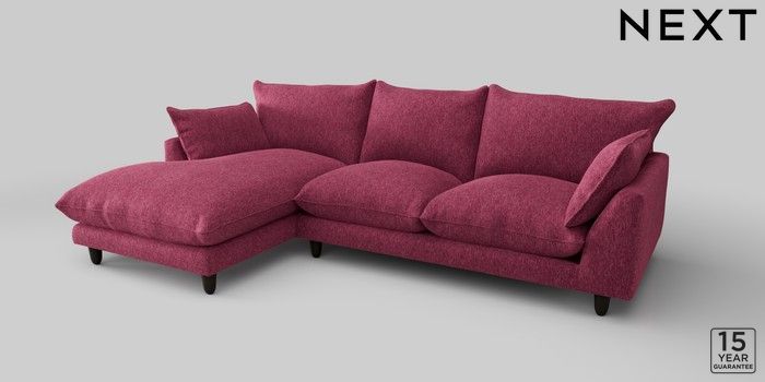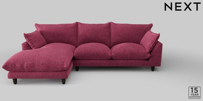 7.2.10 Noa Deep Relaxed Sit Medium Sofa Chaise - Left Hand Cotswold Chenille Dark Raspberry Pink High Leg - Dark | Made Click here to use our website with more accessibility support, for example screen readers