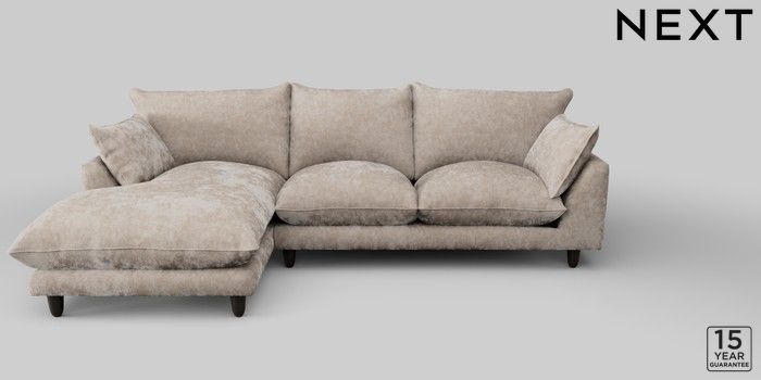 7.2.10 Noa Deep Relaxed Sit Medium Sofa Chaise - Left Hand Distressed Velour Mid Natural High Leg - Dark | Made Click here to use our website with more accessibility support, for example screen readers