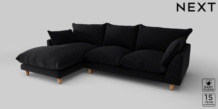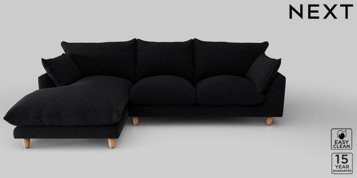 7.2.10 Noa Deep Relaxed Sit Medium Sofa Chaise - Left Hand Fine Chenille Easy Clean Black High Leg - Light | Made Click here to use our website with more accessibility support, for example screen readers