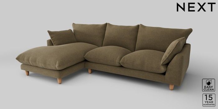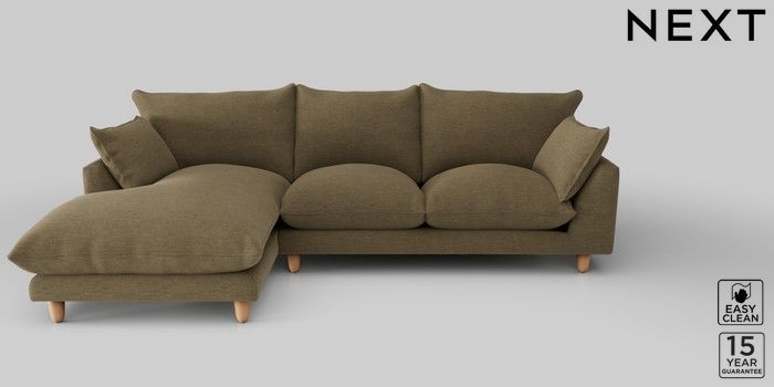 7.2.10 Noa Deep Relaxed Sit Medium Sofa Chaise - Left Hand Fine Chenille Easy Clean Dark Moss Green High Leg - Light | Made Click here to use our website with more accessibility support, for example screen readers