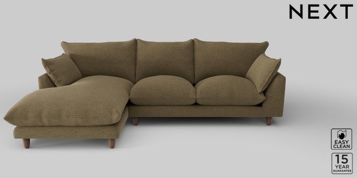 7.2.10 Noa Deep Relaxed Sit Medium Sofa Chaise - Left Hand Fine Chenille Easy Clean Dark Moss Green High Leg - Mid | Made Click here to use our website with more accessibility support, for example screen readers
