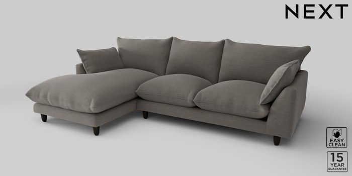 7.2.10 Noa Deep Relaxed Sit Medium Sofa Chaise - Left Hand Fine Chenille Easy Clean Dark Smoke Grey High Leg - Dark | Made Click here to use our website with more accessibility support, for example screen readers