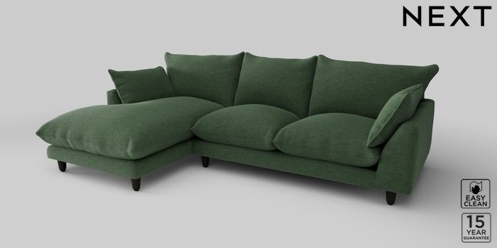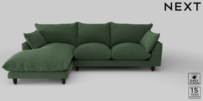 7.2.10 Noa Deep Relaxed Sit Medium Sofa Chaise - Left Hand Fine Chenille Easy Clean Mid Khaki Green High Leg - Dark | Made Click here to use our website with more accessibility support, for example screen readers