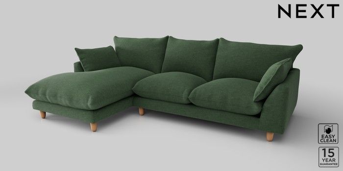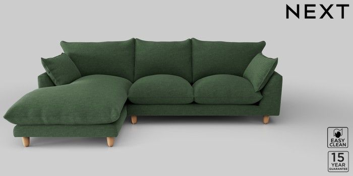 7.2.10 Noa Deep Relaxed Sit Medium Sofa Chaise - Left Hand Fine Chenille Easy Clean Mid Khaki Green High Leg - Light | Made Click here to use our website with more accessibility support, for example screen readers