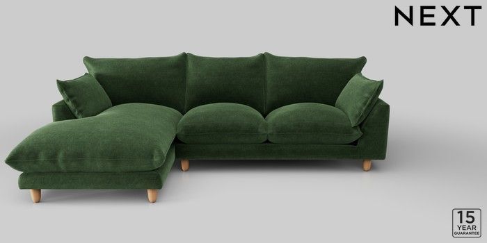 7.2.10 Noa Deep Relaxed Sit Medium Sofa Chaise - Left Hand Luxe Chenille Dark Green High Leg - Light | Made Click here to use our website with more accessibility support, for example screen readers