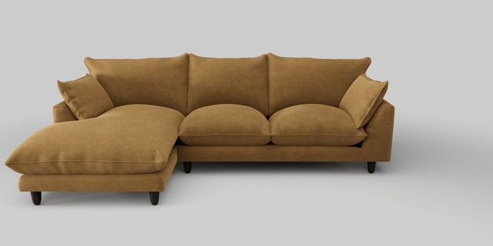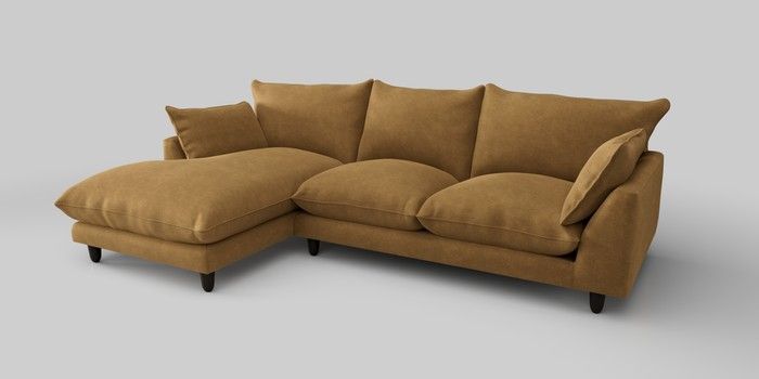 7.2.10 Noa Deep Relaxed Sit Medium Sofa Chaise - Left Hand Luxe Chenille Honey Yellow High Leg - Dark | Made Click here to use our website with more accessibility support, for example screen readers