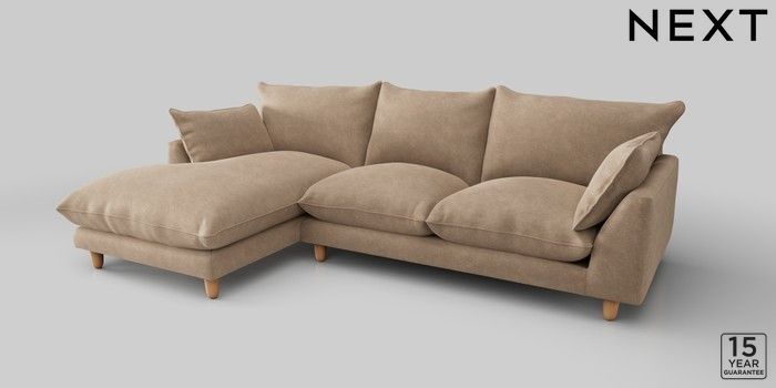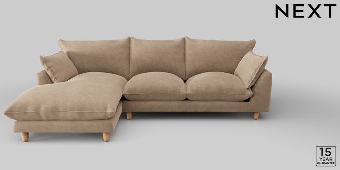 7.2.10 Noa Deep Relaxed Sit Medium Sofa Chaise - Left Hand Luxe Chenille Mid Camel Beige High Leg - Light | Made Click here to use our website with more accessibility support, for example screen readers