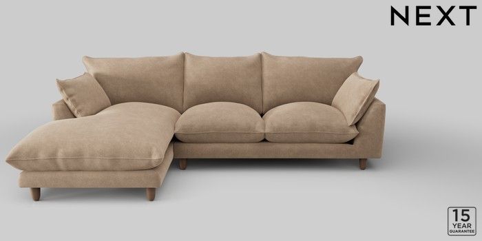 7.2.10 Noa Deep Relaxed Sit Medium Sofa Chaise - Left Hand Luxe Chenille Mid Camel Beige High Leg - Mid | Made Click here to use our website with more accessibility support, for example screen readers