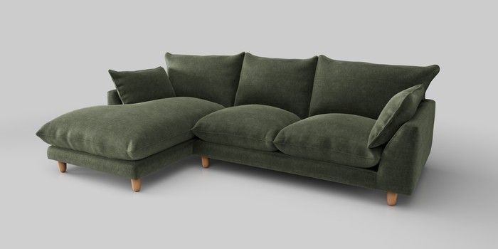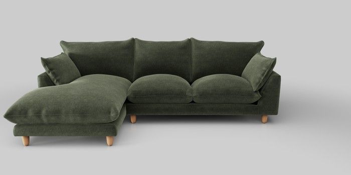 7.2.10 Noa Deep Relaxed Sit Medium Sofa Chaise - Left Hand Luxe Chenille Mid Green High Leg - Light | Made Click here to use our website with more accessibility support, for example screen readers