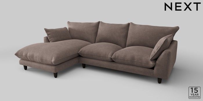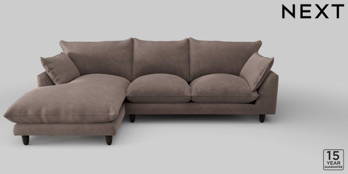 7.2.10 Noa Deep Relaxed Sit Medium Sofa Chaise - Left Hand Luxe Chenille Mink Brown High Leg - Dark | Made Click here to use our website with more accessibility support, for example screen readers