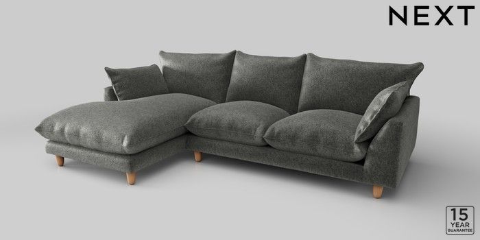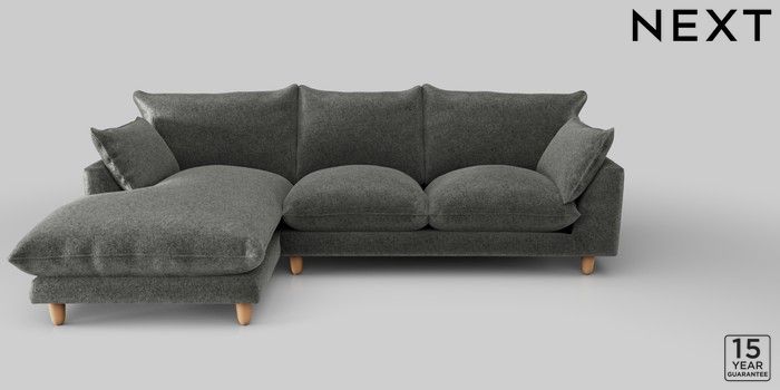 7.2.10 Noa Deep Relaxed Sit Medium Sofa Chaise - Left Hand Plush Chenille Dark Grey High Leg - Light | Made Click here to use our website with more accessibility support, for example screen readers