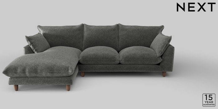 7.2.10 Noa Deep Relaxed Sit Medium Sofa Chaise - Left Hand Plush Chenille Dark Grey High Leg - Mid | Made Click here to use our website with more accessibility support, for example screen readers
