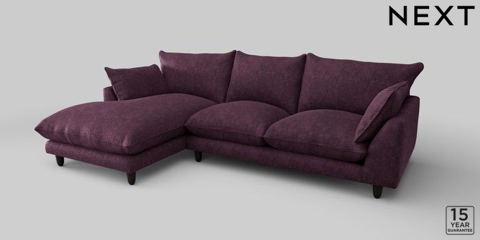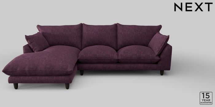 7.2.10 Noa Deep Relaxed Sit Medium Sofa Chaise - Left Hand Plush Chenille Dark Plum Purple High Leg - Dark | Made Click here to use our website with more accessibility support, for example screen readers