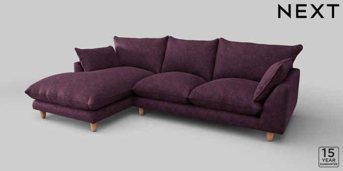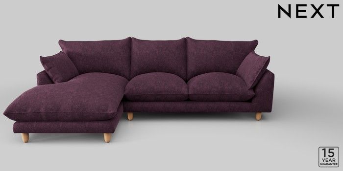 7.2.10 Noa Deep Relaxed Sit Medium Sofa Chaise - Left Hand Plush Chenille Dark Plum Purple High Leg - Light | Made Click here to use our website with more accessibility support, for example screen readers