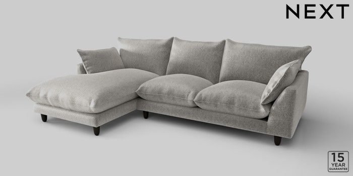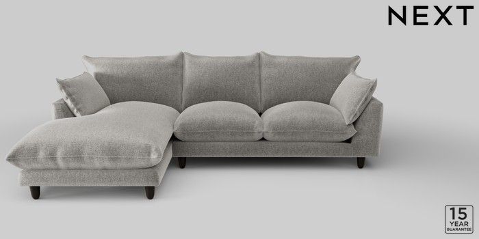 7.2.10 Noa Deep Relaxed Sit Medium Sofa Chaise - Left Hand Plush Chenille Light Grey High Leg - Dark | Made Click here to use our website with more accessibility support, for example screen readers