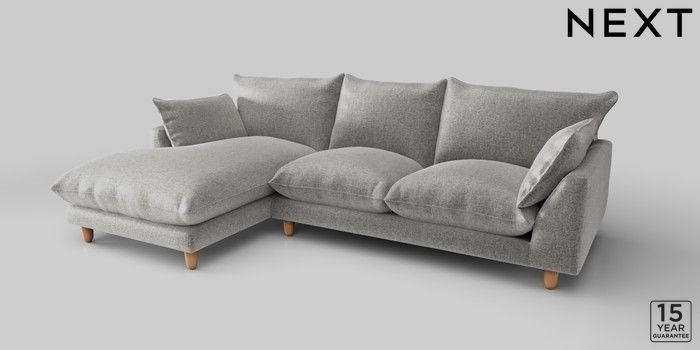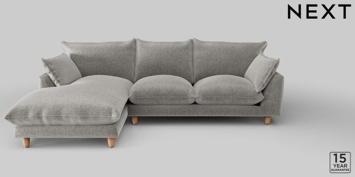 7.2.10 Noa Deep Relaxed Sit Medium Sofa Chaise - Left Hand Plush Chenille Light Grey High Leg - Light | Made Click here to use our website with more accessibility support, for example screen readers