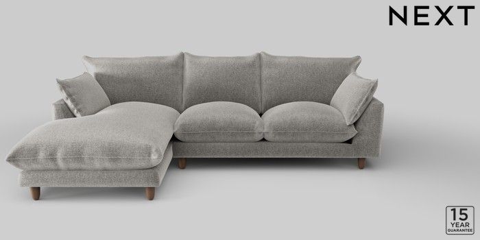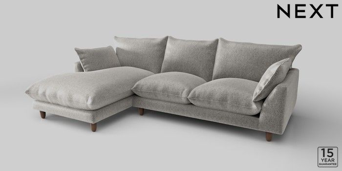 7.2.10 Noa Deep Relaxed Sit Medium Sofa Chaise - Left Hand Plush Chenille Light Grey High Leg - Mid | Made Click here to use our website with more accessibility support, for example screen readers