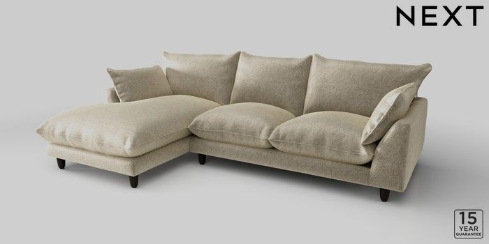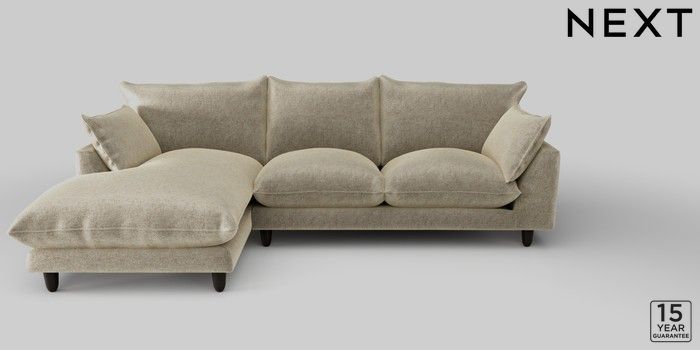 7.2.10 Noa Deep Relaxed Sit Medium Sofa Chaise - Left Hand Plush Chenille Light Natural High Leg - Dark | Made Click here to use our website with more accessibility support, for example screen readers