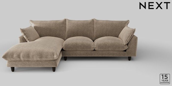 7.2.10 Noa Deep Relaxed Sit Medium Sofa Chaise - Left Hand Plush Chenille Mid Natural High Leg - Dark | Made Click here to use our website with more accessibility support, for example screen readers