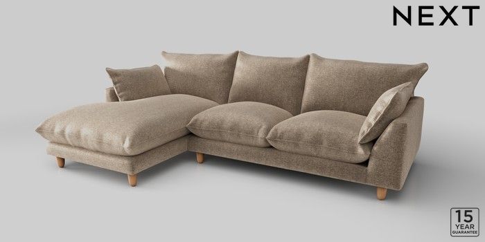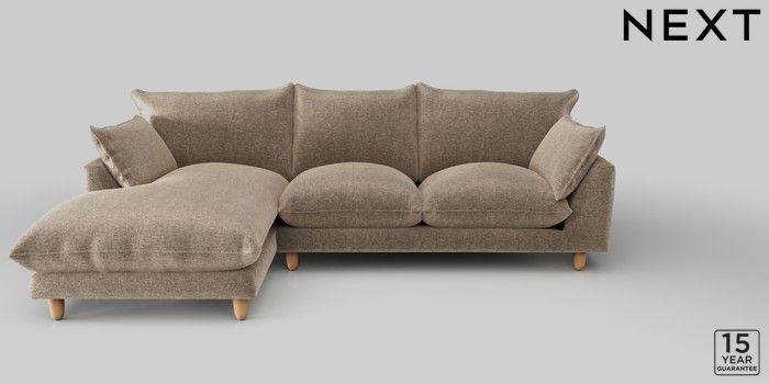 7.2.10 Noa Deep Relaxed Sit Medium Sofa Chaise - Left Hand Plush Chenille Mid Natural High Leg - Light | Made Click here to use our website with more accessibility support, for example screen readers