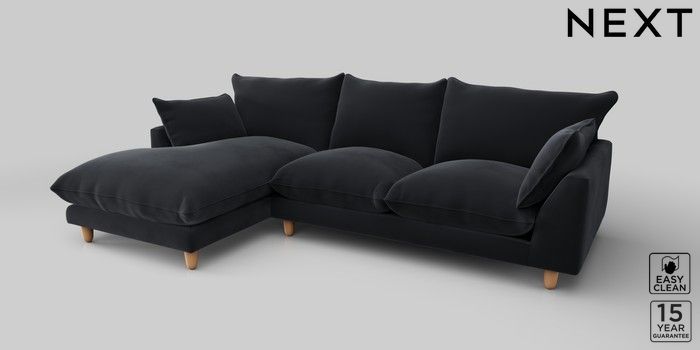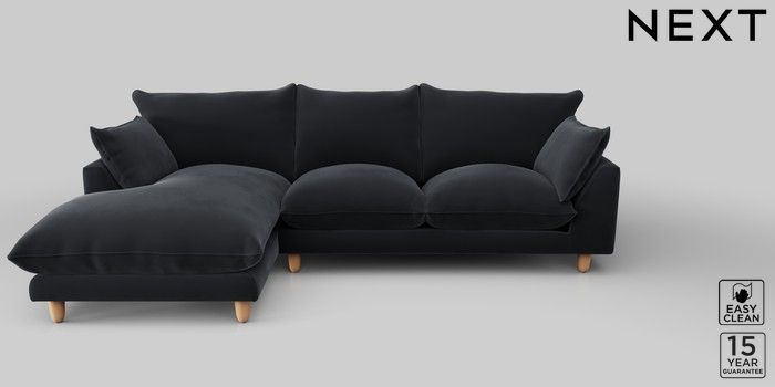 7.2.10 Noa Deep Relaxed Sit Medium Sofa Chaise - Left Hand Plush Velvet Easy Clean Charcoal Grey High Leg - Light | Made Click here to use our website with more accessibility support, for example screen readers