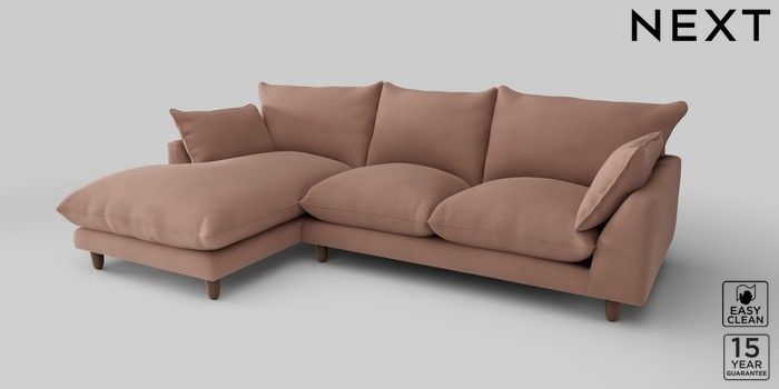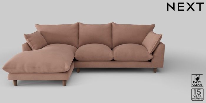 7.2.10 Noa Deep Relaxed Sit Medium Sofa Chaise - Left Hand Plush Velvet Easy Clean Mid Natural High Leg - Mid | Made Click here to use our website with more accessibility support, for example screen readers