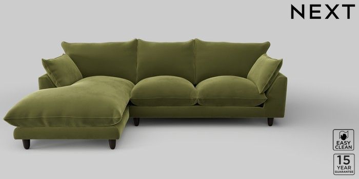 7.2.10 Noa Deep Relaxed Sit Medium Sofa Chaise - Left Hand Plush Velvet Easy Clean Mid Olive Green High Leg - Dark | Made Click here to use our website with more accessibility support, for example screen readers