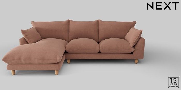 7.2.10 Noa Deep Relaxed Sit Medium Sofa Chaise - Left Hand Relaxed Linen Look Light Rust Brown High Leg - Light | Made Click here to use our website with more accessibility support, for example screen readers