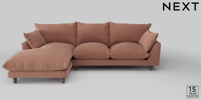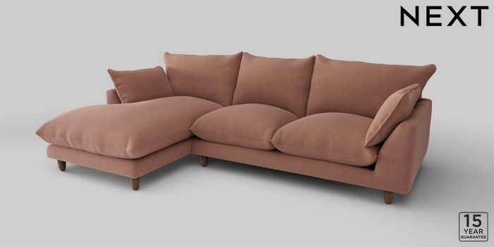 7.2.10 Noa Deep Relaxed Sit Medium Sofa Chaise - Left Hand Relaxed Linen Look Light Rust Brown High Leg - Mid | Made Click here to use our website with more accessibility support, for example screen readers