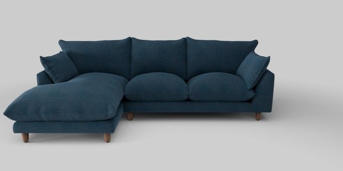 7.2.10 Noa Deep Relaxed Sit Medium Sofa Chaise - Left Hand Ripple Chenille Dark Blue High Leg - Mid | Made Click here to use our website with more accessibility support, for example screen readers