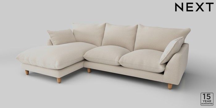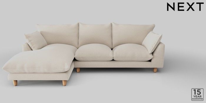 7.2.10 Noa Deep Relaxed Sit Medium Sofa Chaise - Left Hand Studio Chenille Oyster High Leg - Light | Made Click here to use our website with more accessibility support, for example screen readers