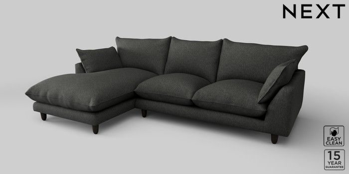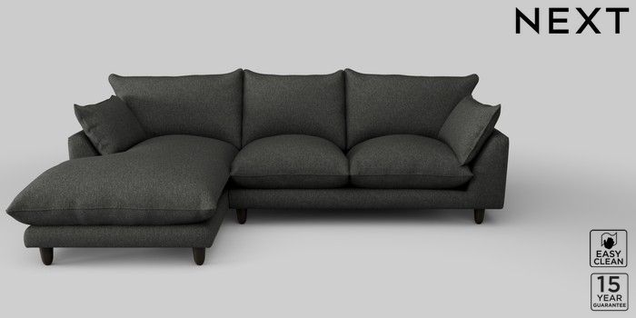 7.2.10 Noa Deep Relaxed Sit Medium Sofa Chaise - Left Hand Tweedy Blend Easy Clean Charcoal Grey High Leg - Dark | Made Click here to use our website with more accessibility support, for example screen readers