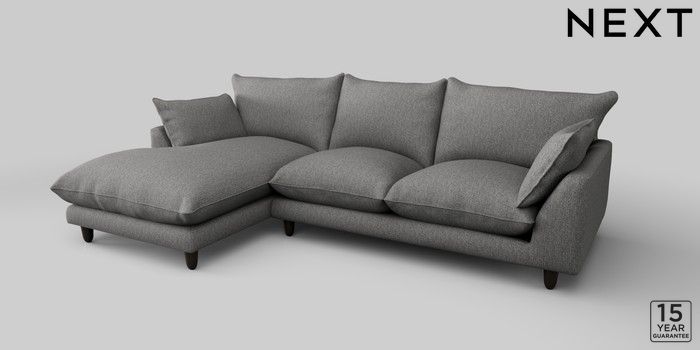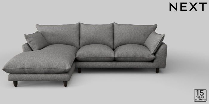 7.2.10 Noa Deep Relaxed Sit Medium Sofa Chaise - Left Hand Tweedy Chenille Dark Grey High Leg - Dark | Made Click here to use our website with more accessibility support, for example screen readers
