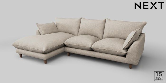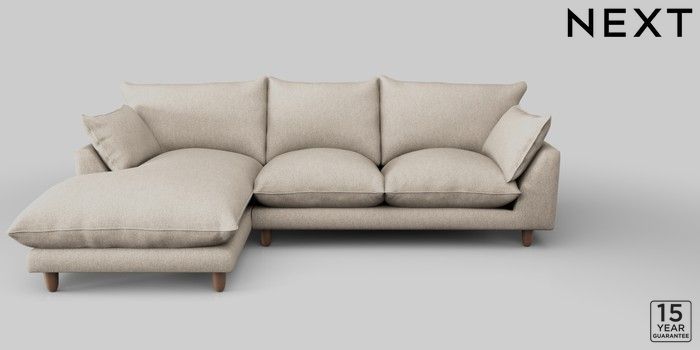 7.2.10 Noa Deep Relaxed Sit Medium Sofa Chaise - Left Hand Tweedy Chenille Mid Natural High Leg - Mid | Made Click here to use our website with more accessibility support, for example screen readers