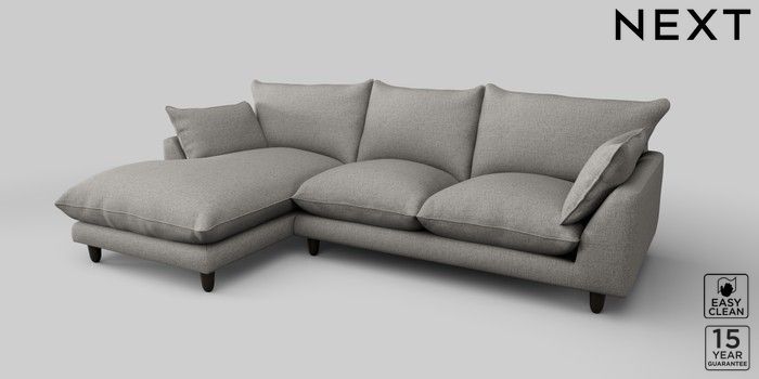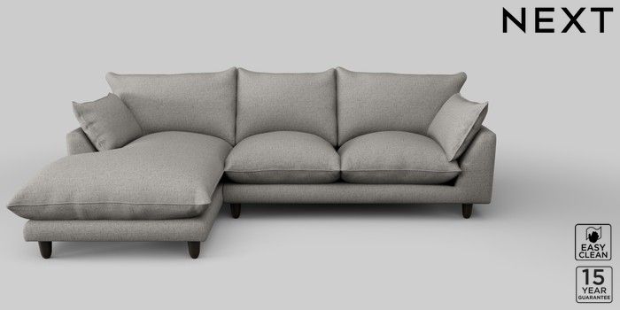 7.2.10 Noa Deep Relaxed Sit Medium Sofa Chaise - Left Hand Woven Chenille Easy Clean Light Grey High Leg - Dark | Made Click here to use our website with more accessibility support, for example screen readers