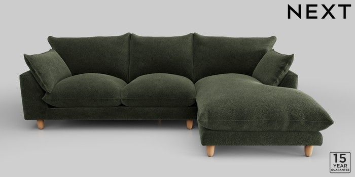 7.2.10 Noa Deep Relaxed Sit Medium Sofa Chaise - Right Hand Boucle Chenille Dark Moss Green High Leg - Light | Made Click here to use our website with more accessibility support, for example screen readers