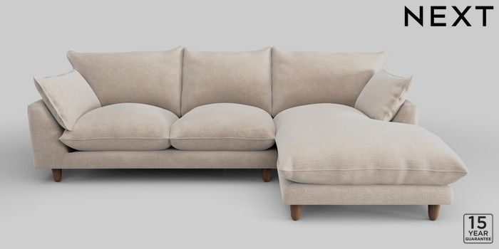 7.2.10 Noa Deep Relaxed Sit Medium Sofa Chaise - Right Hand Boucle Chenille Oyster High Leg - Mid | Made Click here to use our website with more accessibility support, for example screen readers