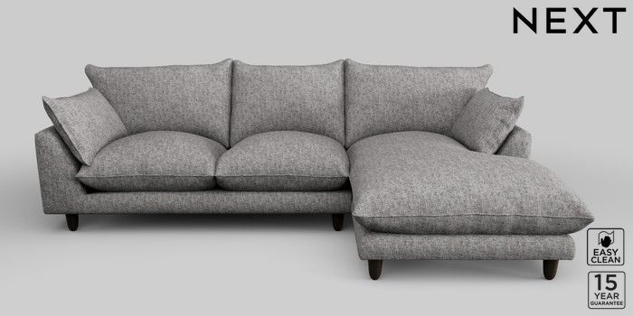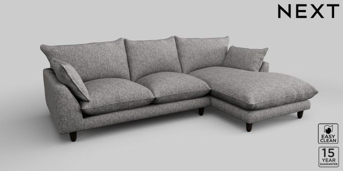 7.2.10 Noa Deep Relaxed Sit Medium Sofa Chaise - Right Hand Chunky Boucle Easy Clean Light Grey High Leg - Dark | Made Click here to use our website with more accessibility support, for example screen readers