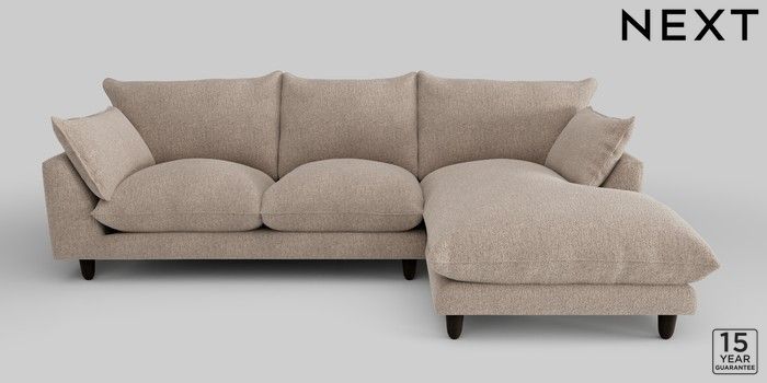 7.2.10 Noa Deep Relaxed Sit Medium Sofa Chaise - Right Hand Chunky Chenille Light Dove High Leg - Dark | Made Click here to use our website with more accessibility support, for example screen readers