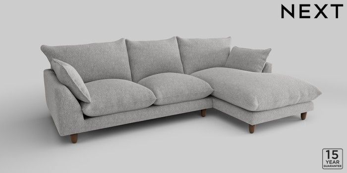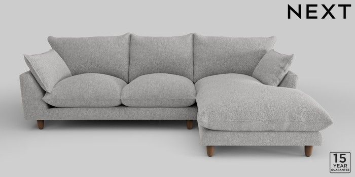 7.2.10 Noa Deep Relaxed Sit Medium Sofa Chaise - Right Hand Chunky Chenille Light Grey High Leg - Mid | Made Click here to use our website with more accessibility support, for example screen readers