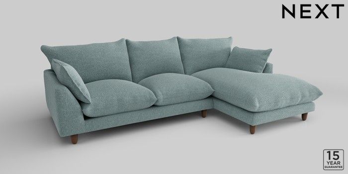 7.2.10 Noa Deep Relaxed Sit Medium Sofa Chaise - Right Hand Chunky Chenille Light Teal Green High Leg - Mid | Made Click here to use our website with more accessibility support, for example screen readers