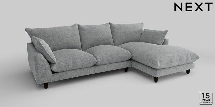 7.2.10 Noa Deep Relaxed Sit Medium Sofa Chaise - Right Hand Chunky Marl Mid Grey High Leg - Dark | Made Click here to use our website with more accessibility support, for example screen readers