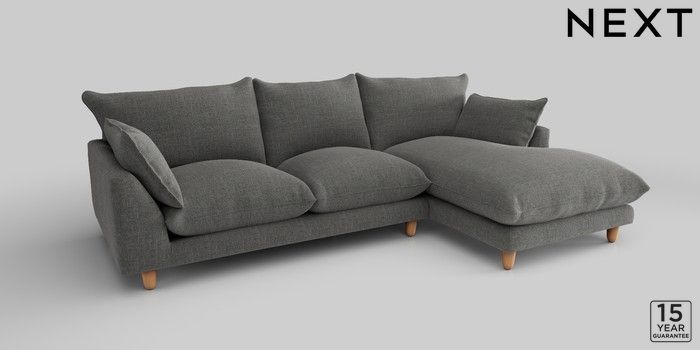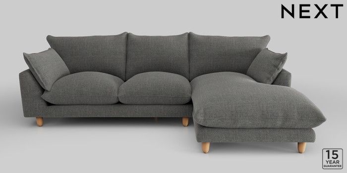 7.2.10 Noa Deep Relaxed Sit Medium Sofa Chaise - Right Hand Chunky Texture Dark Grey High Leg - Light | Made Click here to use our website with more accessibility support, for example screen readers