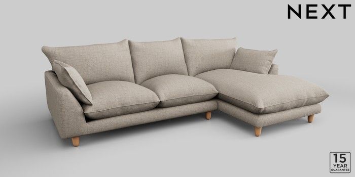 7.2.10 Noa Deep Relaxed Sit Medium Sofa Chaise - Right Hand Chunky Weave Mid Natural High Leg - Light | Made Click here to use our website with more accessibility support, for example screen readers