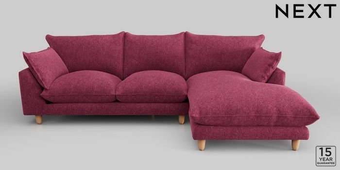 7.2.10 Noa Deep Relaxed Sit Medium Sofa Chaise - Right Hand Cotswold Chenille Dark Raspberry Pink High Leg - Light | Made Click here to use our website with more accessibility support, for example screen readers