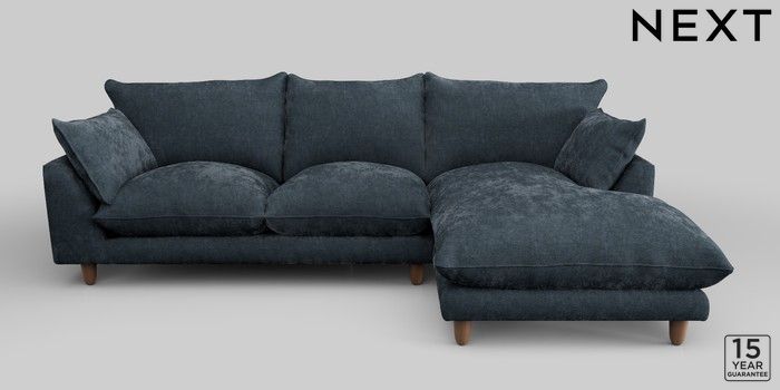 7.2.10 Noa Deep Relaxed Sit Medium Sofa Chaise - Right Hand Distressed Velour Midnight Blue High Leg - Mid | Made Click here to use our website with more accessibility support, for example screen readers